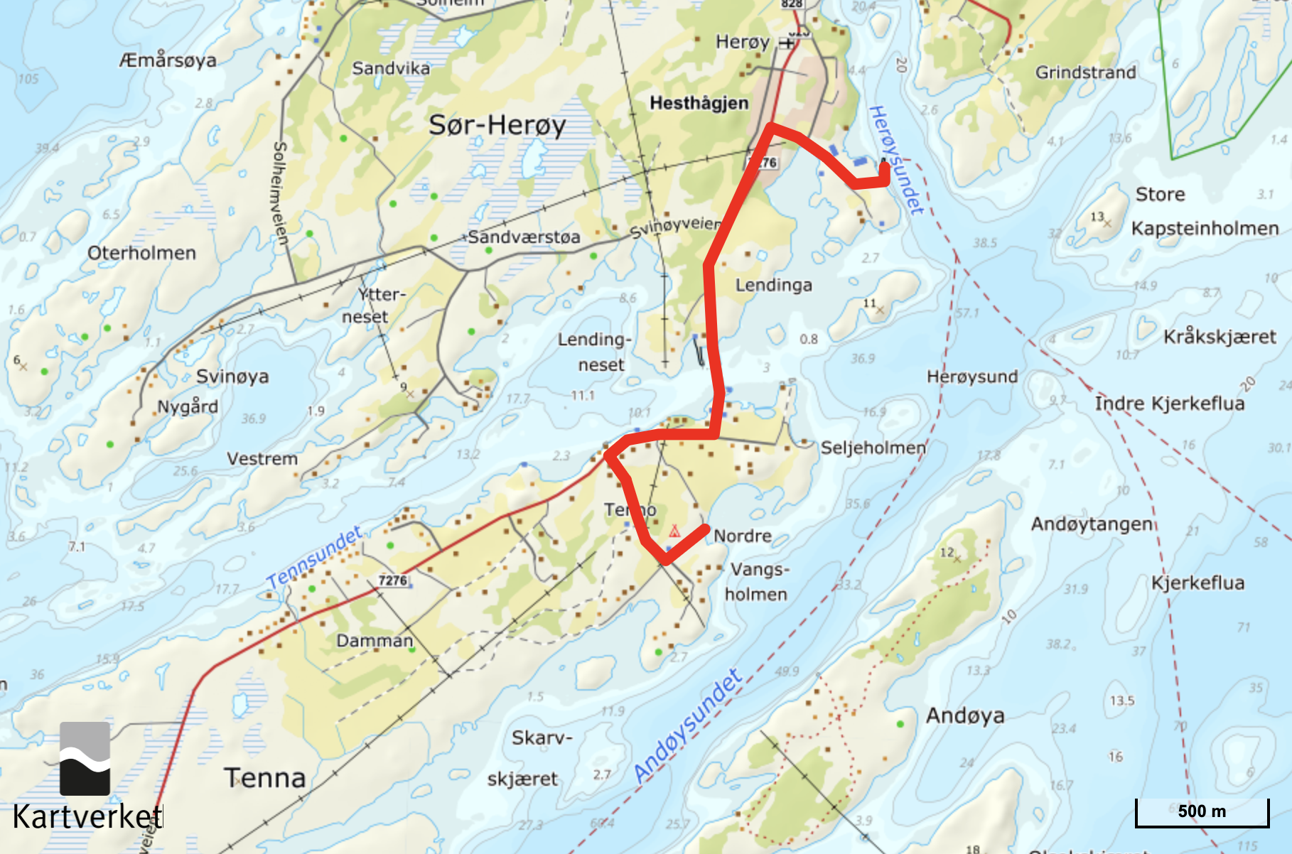 Hit kommer du eksempelvis å kjøre/sykle ca 3km sørover fra Herøy ferge/hurtigbåt kai. Følg skilting mot Herøy caravan camping.